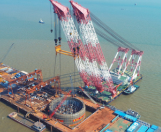 伶仃洋建設(shè)團(tuán)隊(duì)使用鋼絲繩索具吊裝鋼吊箱的目的是將其放水下,和樁基相連并固定住,將海水隔離,以便進(jìn)行承臺(tái)施工。鋼吊箱作為防撞設(shè)施,能夠降低船舶對(duì)大橋的損傷,為大橋提供良好的安全保障。