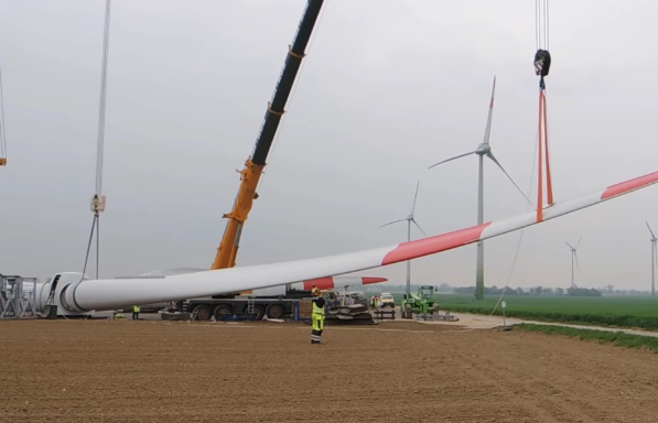 風(fēng)力機(jī)的運輸和安裝對于渺小操作人員來講,確實是一個不小的考驗,由于風(fēng)力機(jī)的機(jī)身巨大,每臺運輸車將將可以承載一個扇葉,在托運的過程中需要使用高強(qiáng)度的吊裝帶進(jìn)行捆綁固定,因為這種吊裝帶的材質(zhì)屬于合成纖維,不會對風(fēng)力機(jī)的表面造成劃痕。