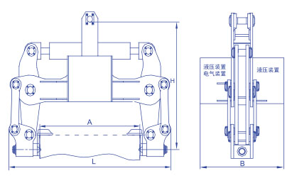 由吊耳、梁體、鉗腿、油缸、液壓控制系統(tǒng)、電氣及電氣控制系統(tǒng)、電纜卷筒等部分組成。